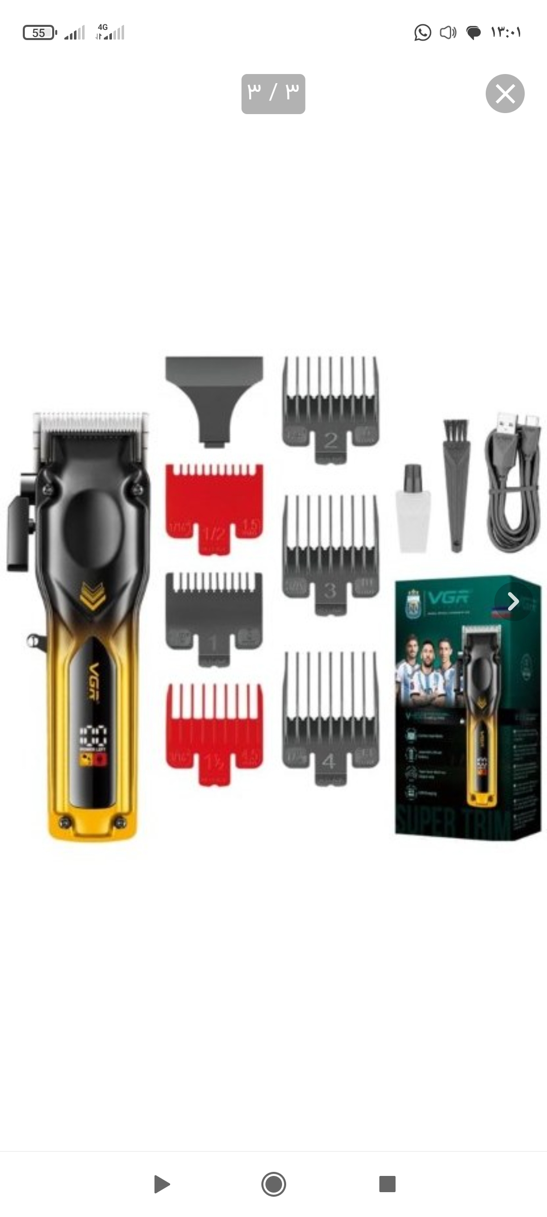 - به همراه روغن روان کننده، برس تمیزکننده، کابل شارژ USB و محافظ تیغه